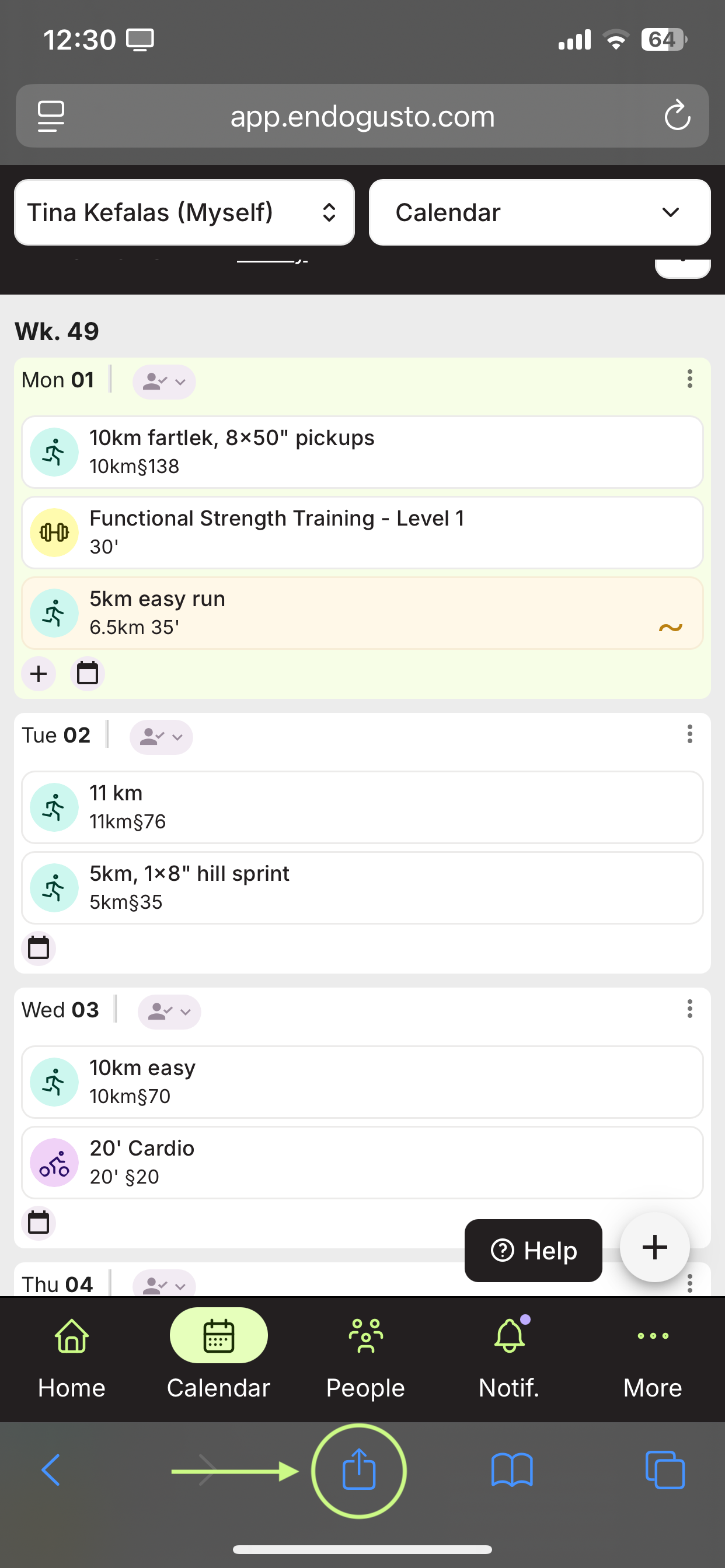 Go to your coach's subdomain (yoursubdomain.endogusto.com) or to app.endogusto.com if you are the business owner, through your browser. And click on the download symbol in the address bar.