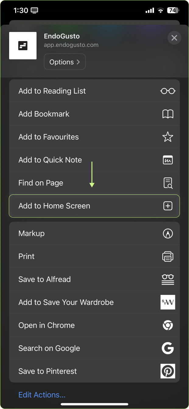 Once the installation is completed, you’ll get a push notification informing you that the EndoGusto app has been “Added to Home screen.” Now you may access EndoGusto through the app icon on your Home screen.