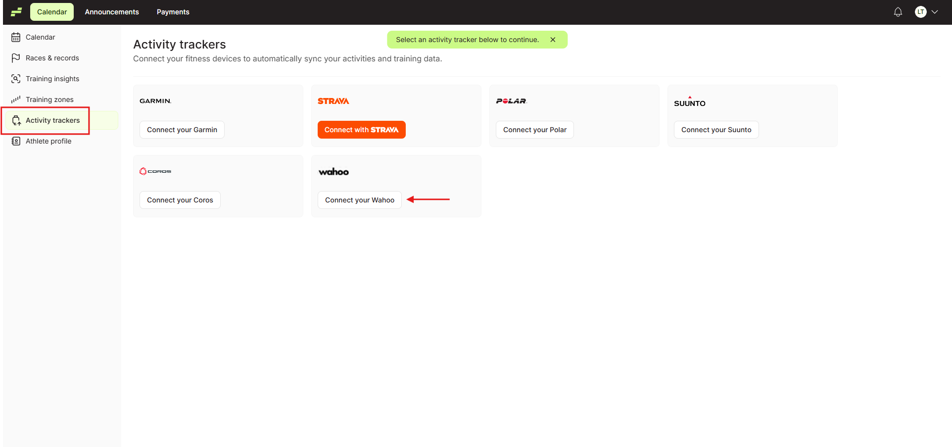 Step 3: Connect Your Wahoo Account