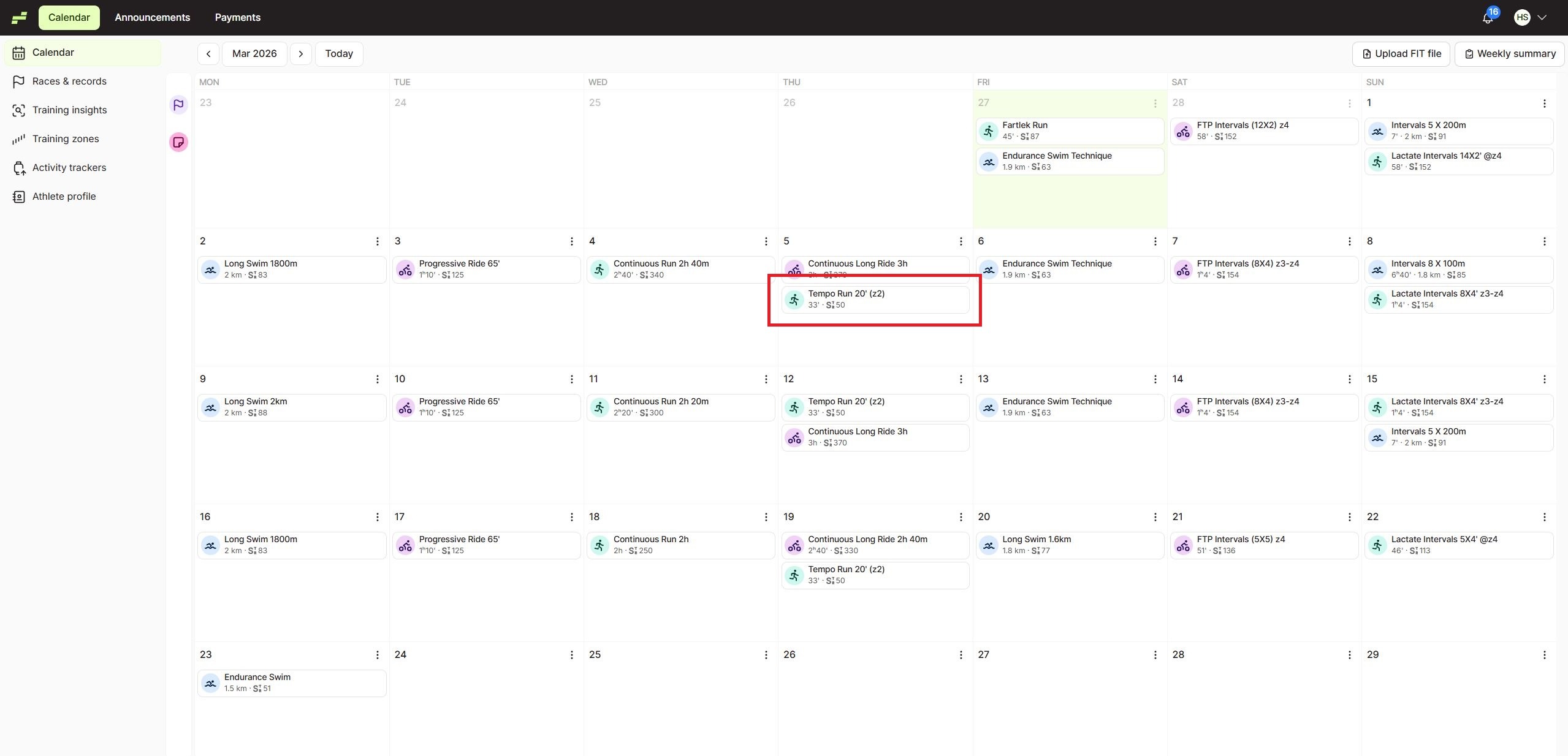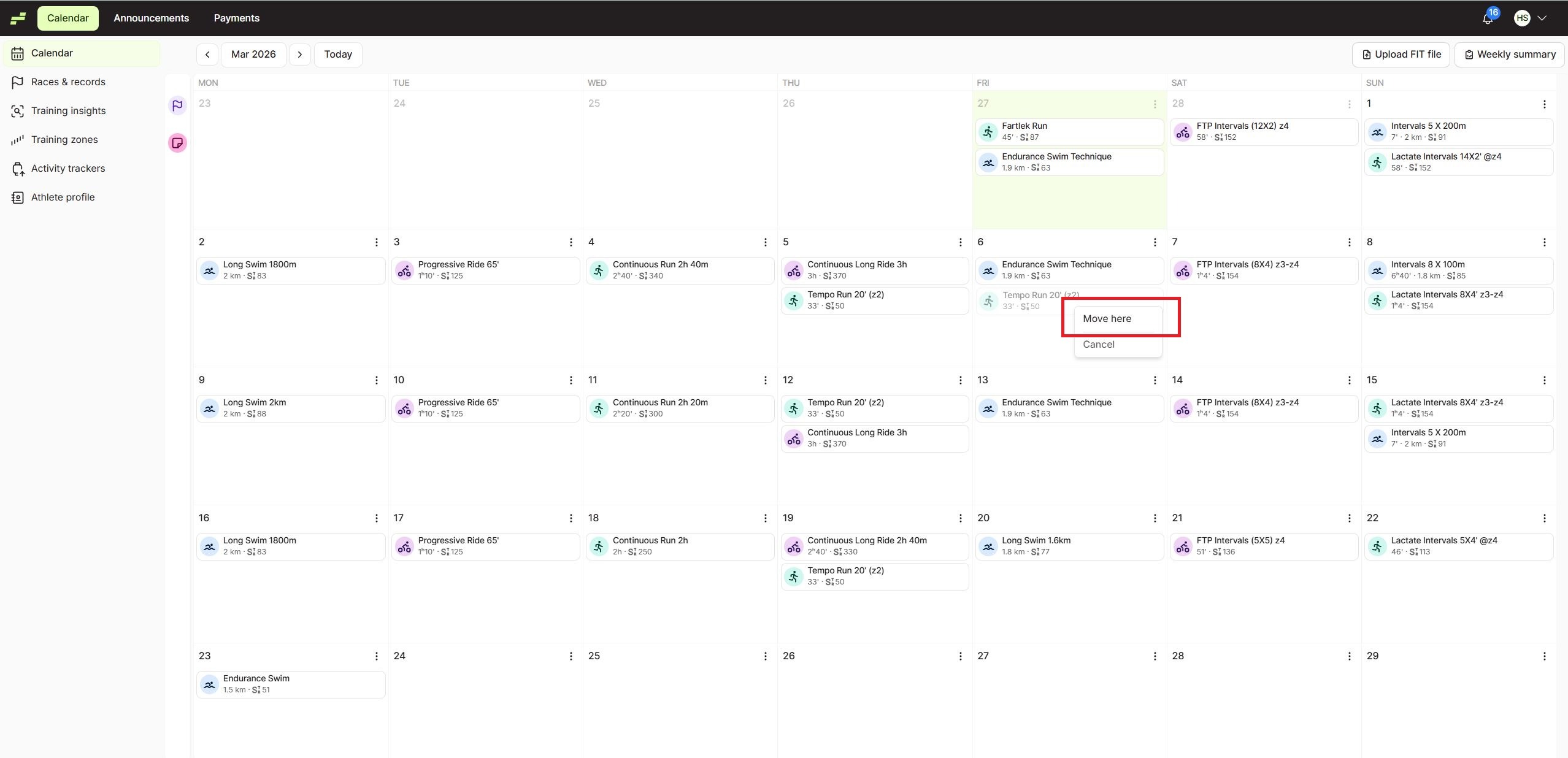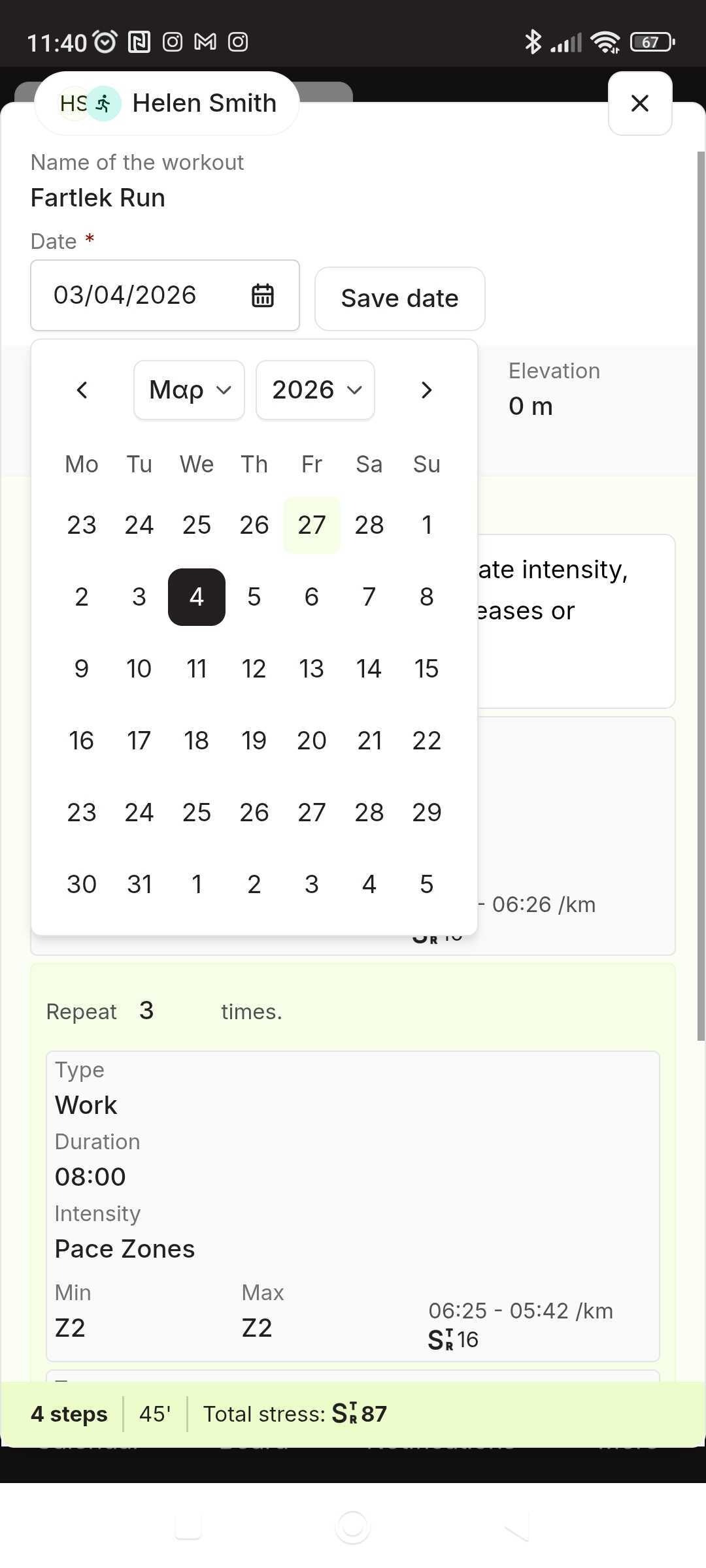 If you need to reschedule a workout in EndoGusto, you can easily move it to another date directly from your calendar.
