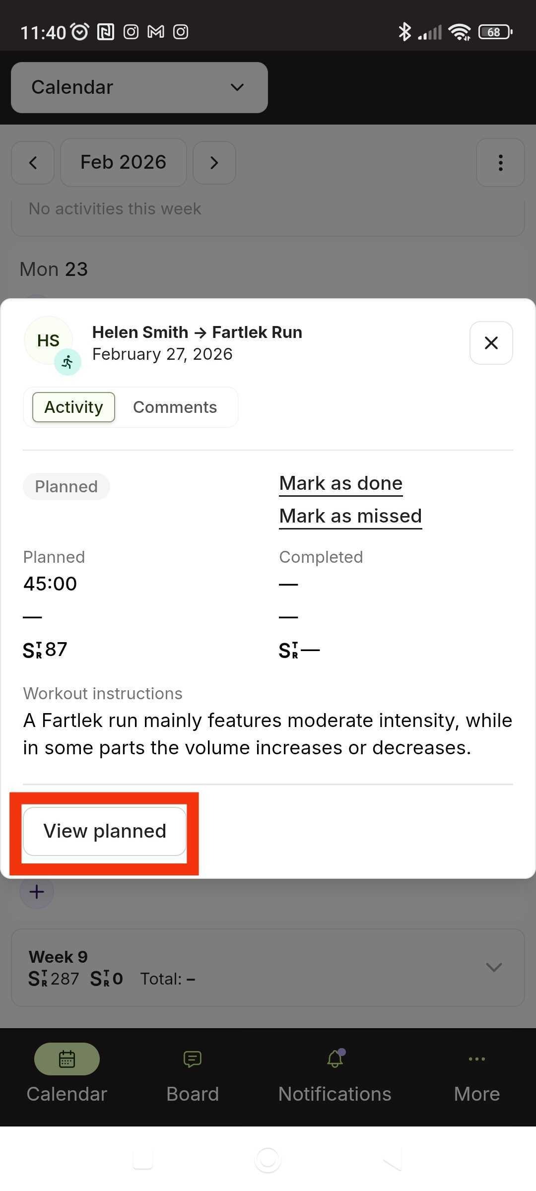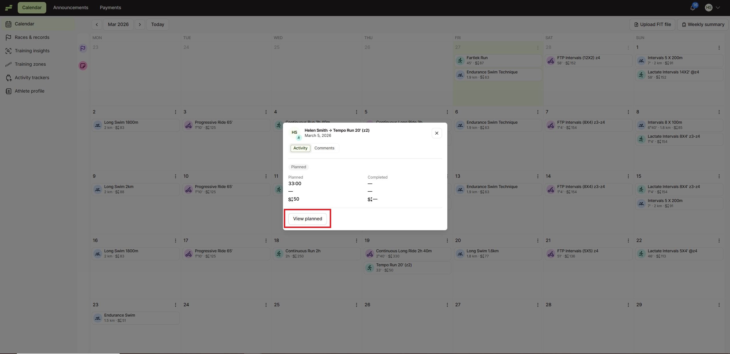 In the workout preview window, click “View planned”.